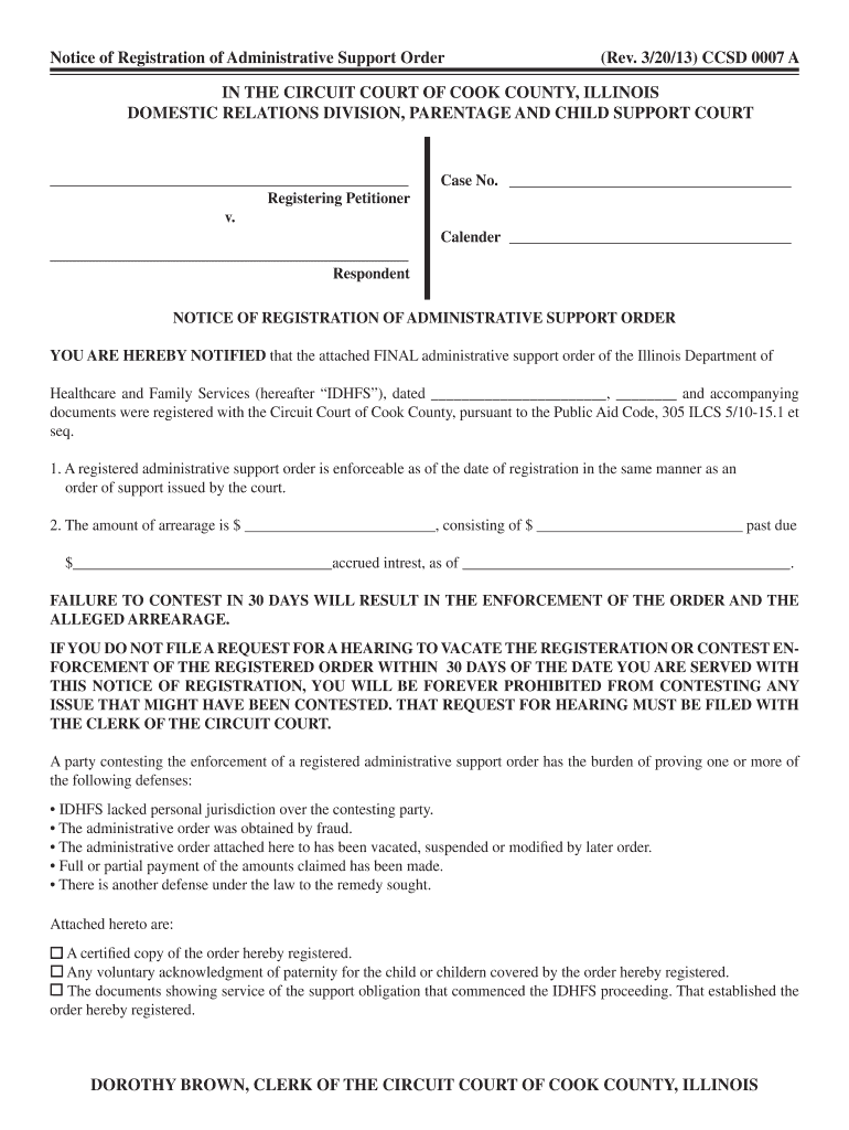 Get the free Notice of Registration of Administrative Support Order - 12 218 239
