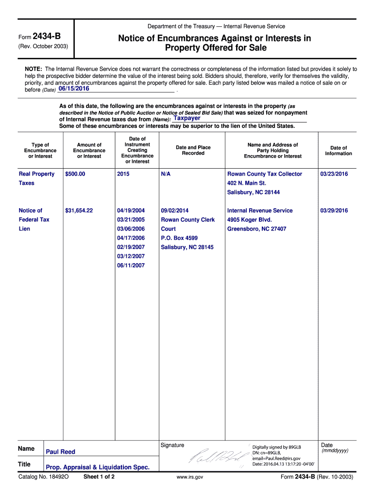 NOTE: The Internal Revenue Service does not warrant the correctness or completeness of the information listed and provides it solely to help the prospective bidder determine the value of the interest