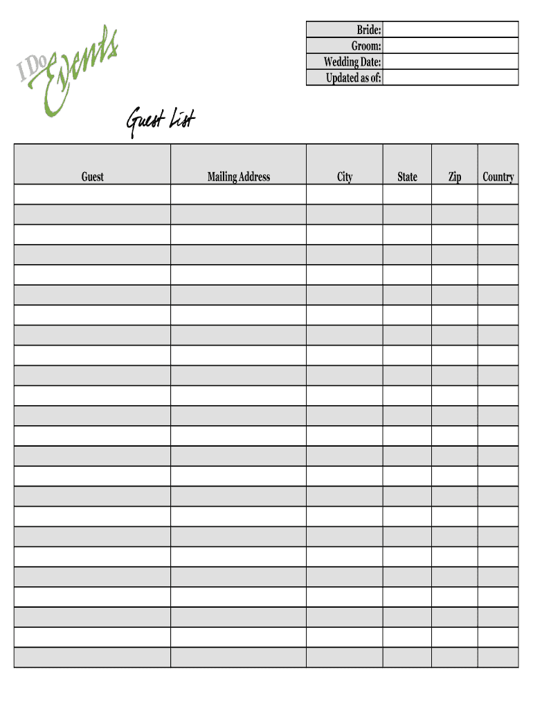 Bride: Groom: Wedding Date: Updated as of: Guest Mailing Address City State Zip Country Guest Mailing Address City State Zip Country Guest Mailing Address City State Zip Country Guest Mailing Address