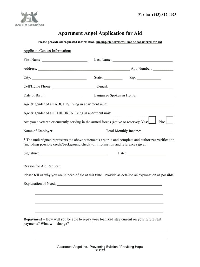 Fill out your apartment angel application rev online with pdfFiller!