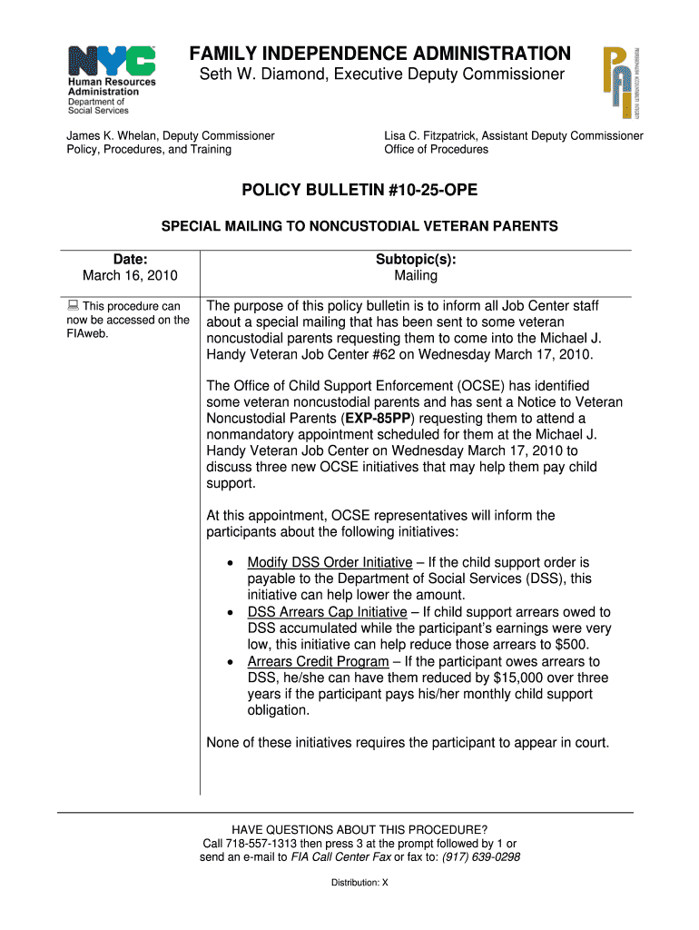 Get the free Fitzpatrick, Assistant Deputy Commissioner Office of Procedures POLICY BULLETIN #10-...