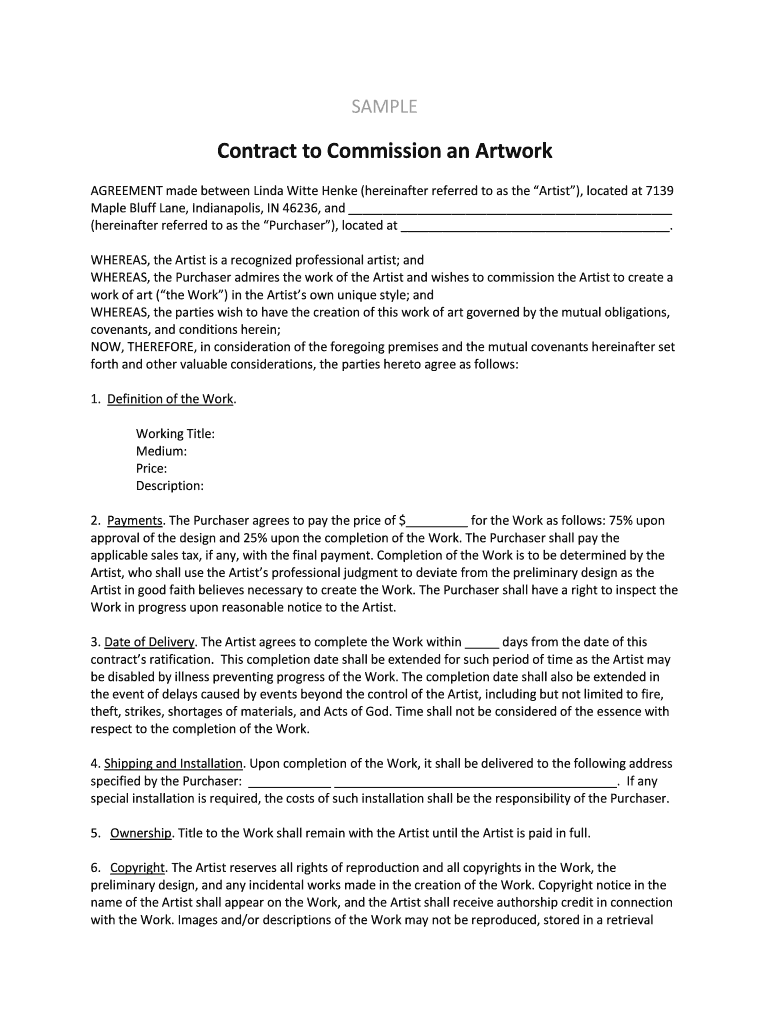 Get the free Contract to Commission an Artwork
