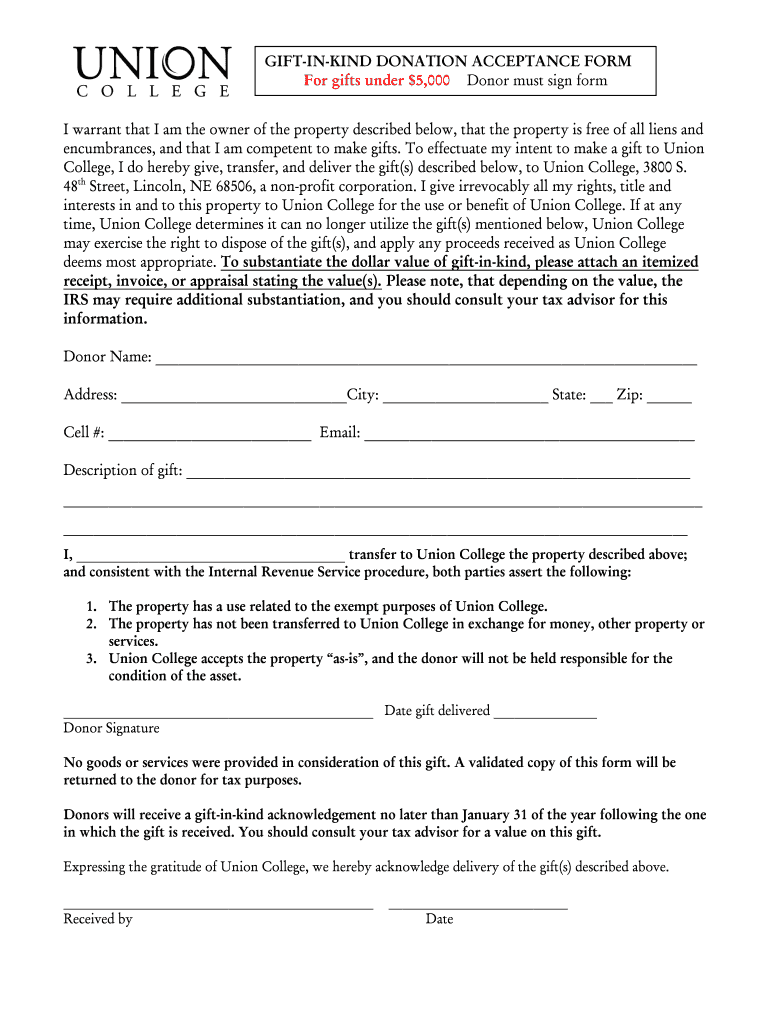 Get the free GIFT-IN-KIND DONATION ACCEPTANCE FORM - ucollege