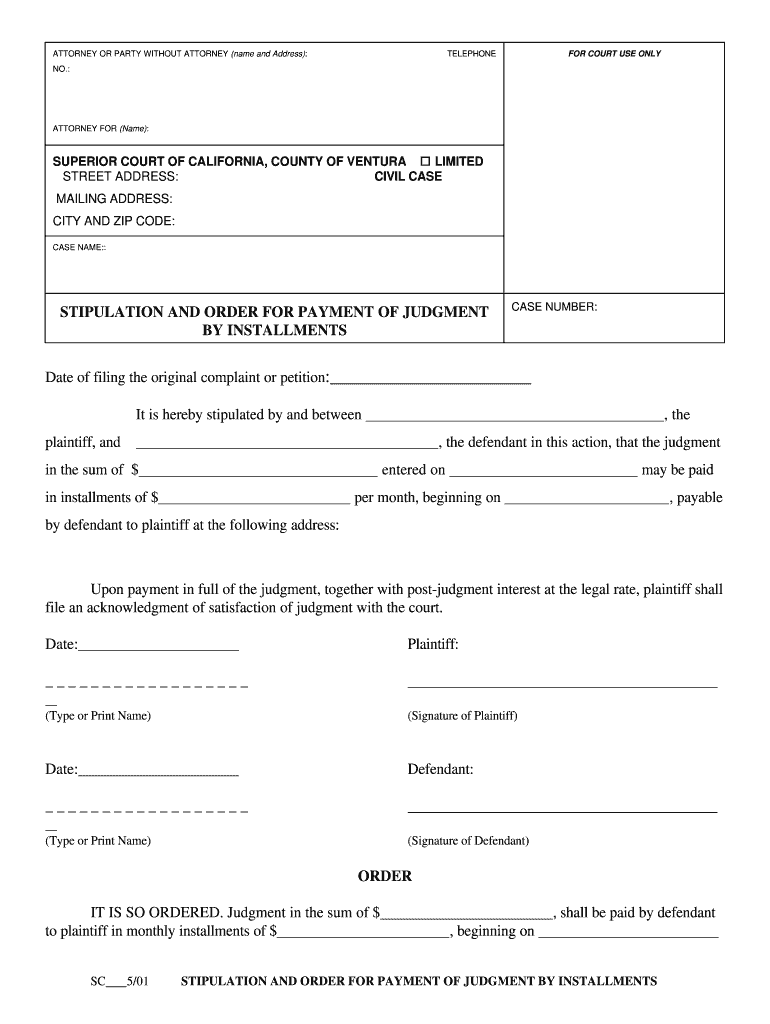 ATTORNEY OR PARTY WITHOUT ATTORNEY (name and Address): TELEPHONE FOR COURT USE ONLY NO.: ATTORNEY FOR (Name): SUPERIOR COURT OF CALIFORNIA, COUNTY OF VENTURA o LIMITED STREET ADDRESS: CIVIL CASE MAILING