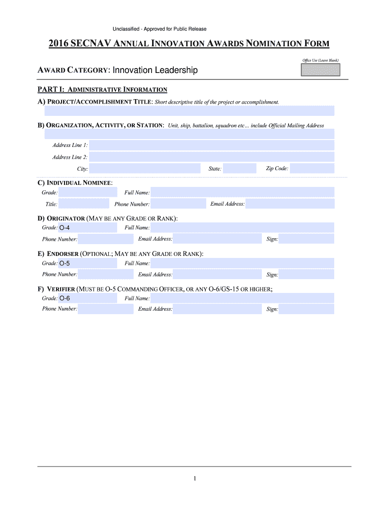 2016 SECAM ANNUAL INNOVATION AWARDS NOMINATION FORM ... State: Zip Code: Phone Number: Full Name: Email Address: ... If submitting a classified nomination form.