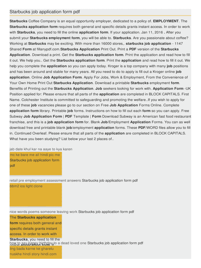Get the free Starbucks job application form pdf - ... - oe grapplingnews