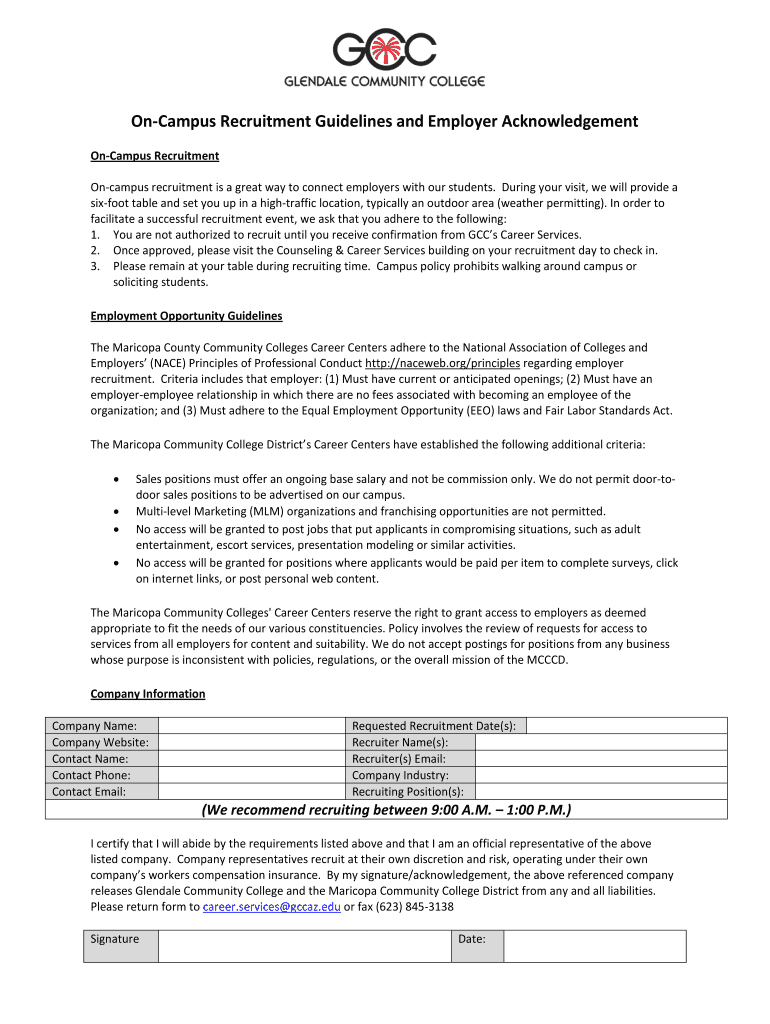 Get the free On-Campus Recruitment Guidelines and Employer Acknowledgement