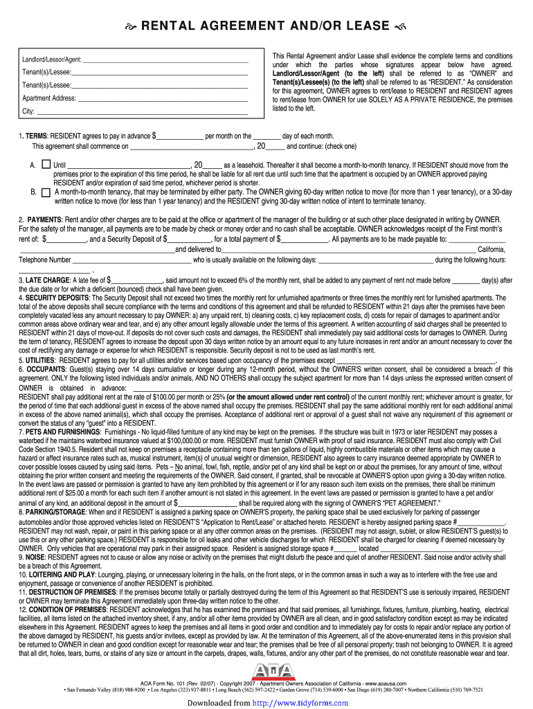 Get the free Landlord/Lessor/Agent: