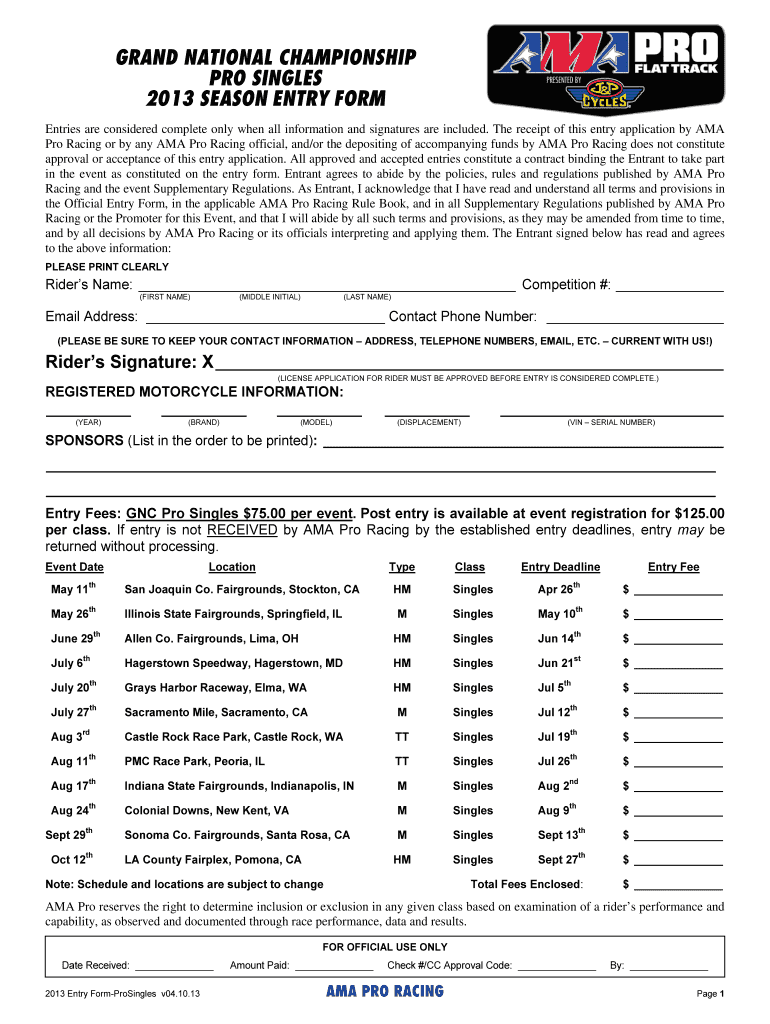 Entries are considered complete only when all information and signatures are included. The receipt of this entry application by AMA