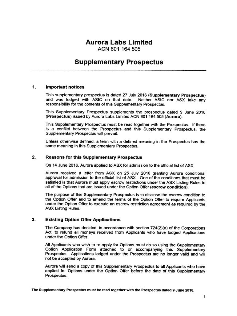 OPTION OFFER APPLICATION FORM THIS DOCUMENT IS IMPORTANT. IF YOU ARE IN DOUBT AS TO HOW TO DEAL WITH IT, PLEASE CONTACT YOUR STOCK BROKER OR LICENSED PROFESSIONAL ADVISOR. AURORA LABS LTD All Correspondence