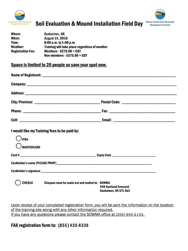 Get the free download a registration form - Saskatchewan Onsite Wastewater ... - sowma