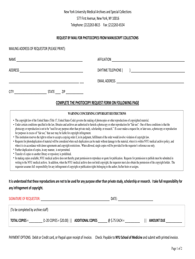 Get the free New York University Medical Archives and Special Collections - archives med nyu