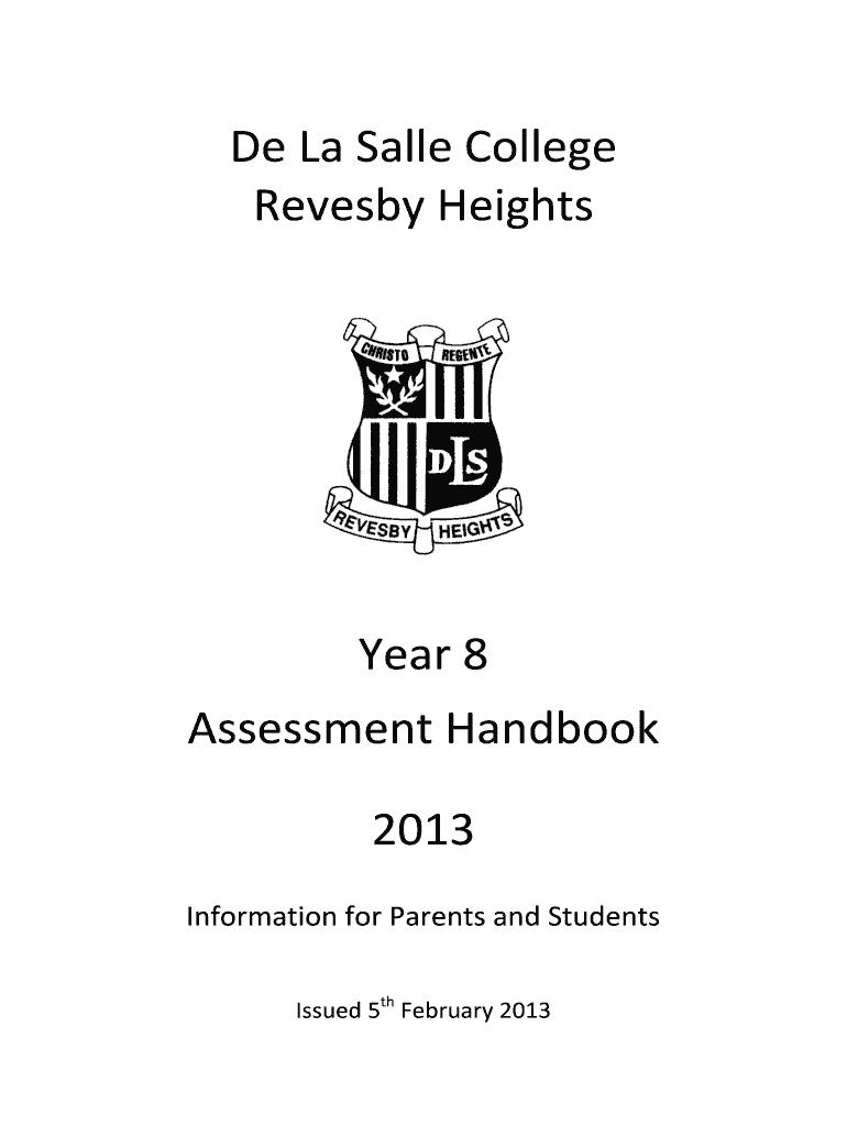 De La Salle College Reverb Heights Year 8 Assessment Handbook 2013 Information for Parents and Students Issued 5th February 2013 2013 De La Salle College Reverb Heights Year 8 Assessment Handbook