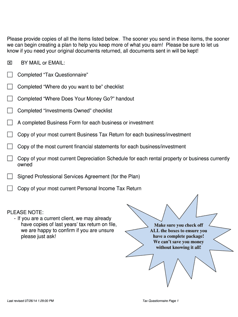 How to fill out tax questionnaire - tax