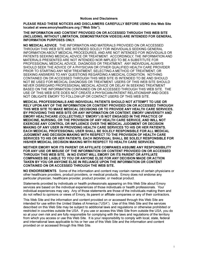Get the free Notices and Disclaimers