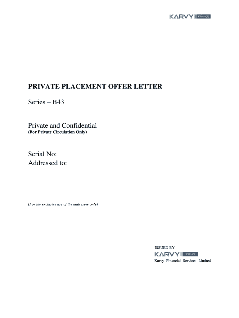 PRIVATE PLACEMENT OFFER LETTER Series B43 Private and Confidential (For Private Circulation Only) Serial No: Addressed to: (For the exclusive use of the addressee only) ISSUED BY Early Financial Services