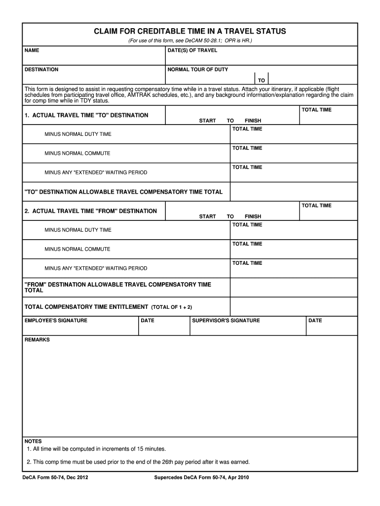 Get the free CLAIM FOR CREDITABLE TIME IN A TRAVEL STATUS