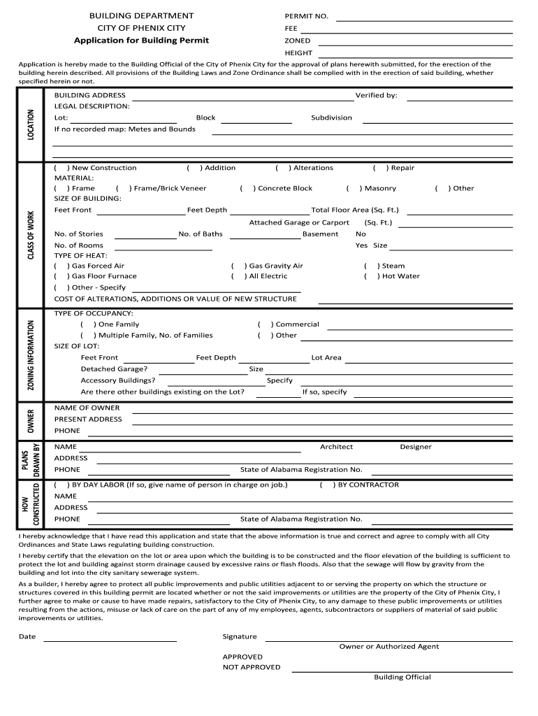 Get the free Building Permit Application - Phenix City, Alabama