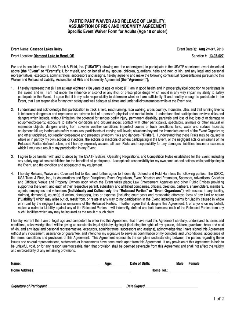 Any adult participating in USATF-sanctioned events or activities must complete the USATF adult waiver form.