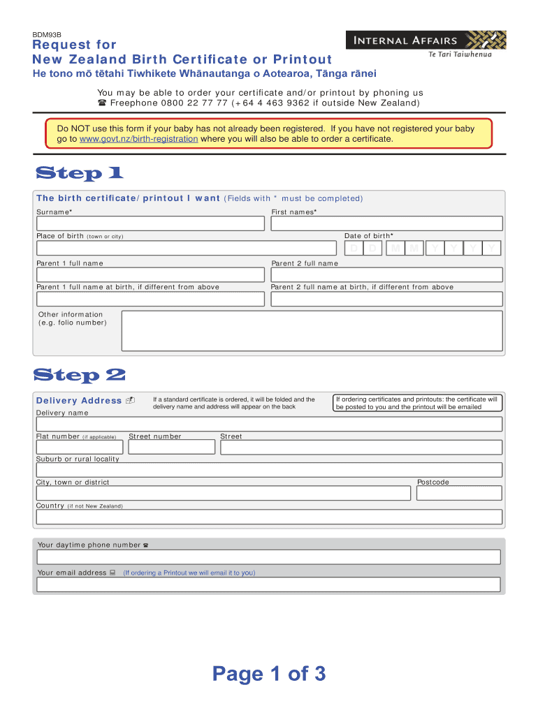 Get the free BDM93B certificate printout order form
