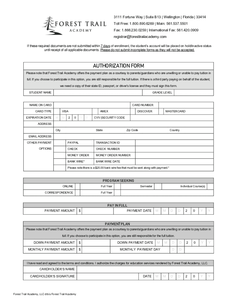 Get the free Forest Trail Academy Payment Authorization Form