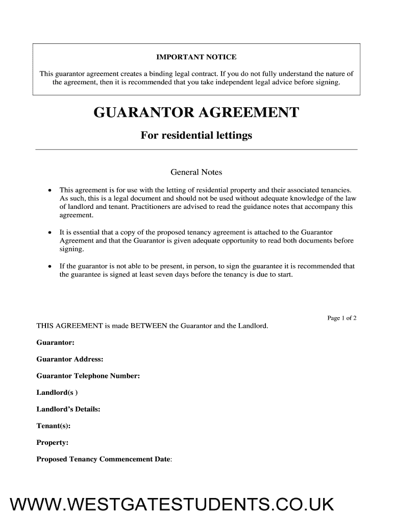 IMPORTANT NOTICE This guarantor agreement creates a binding legal contract. If you do not fully understand the nature of the agreement, then it is recommended that you take independent legal advice