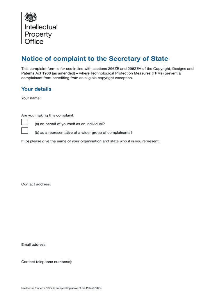 Get the free Notice of complaint to the Secretary of State