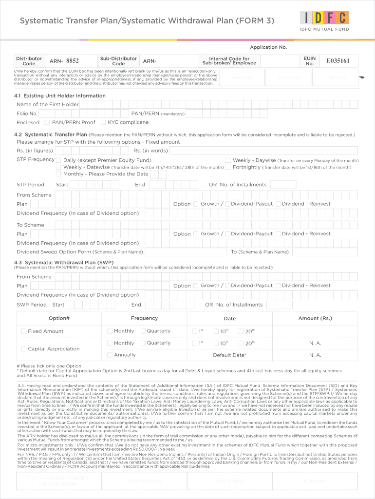 Get the free Systematic Transfer Plan/Systematic Withdrawal Plan (FORM 3) - unique-consultants