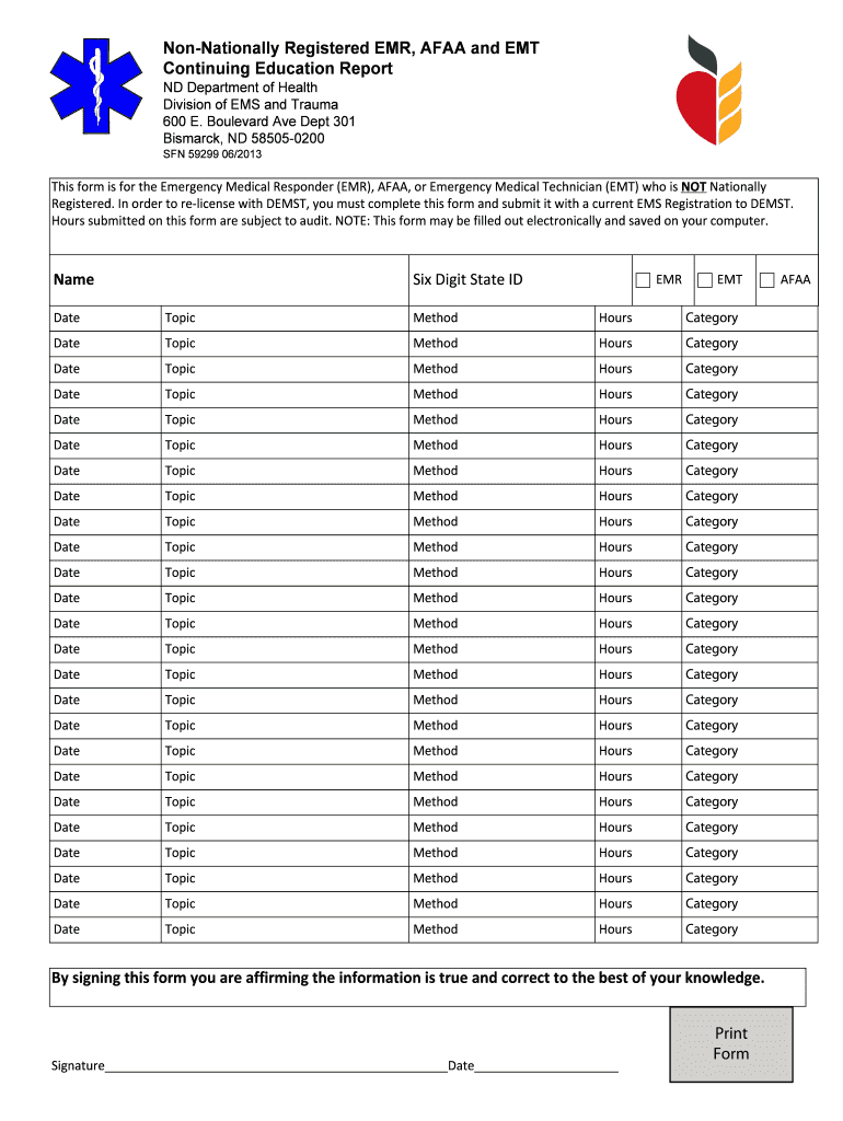 Get the free Non-Nationally Registered EMR, AFAA and EMT Continuing ... - ndhealth