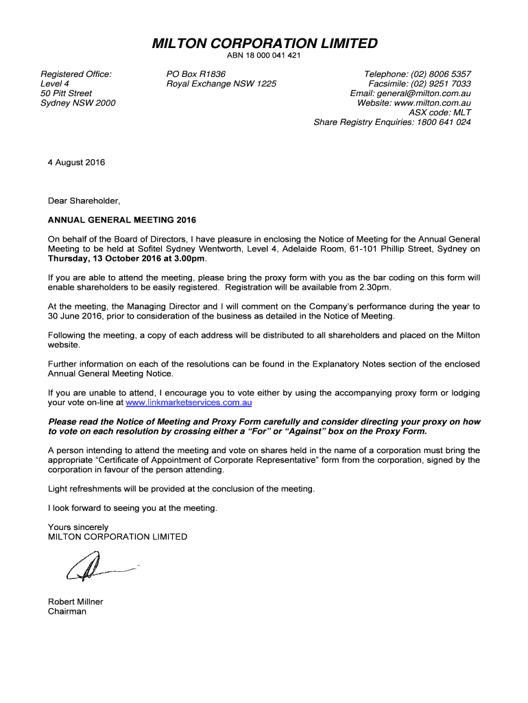 Get the free Notice of AGM and Sample Proxy Form - 2016