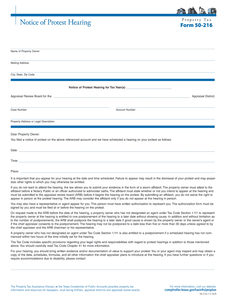 Get the free Notice of Protest Hearing Property Tax Form 50-216. Property Tax Formm 50-216 Notice...