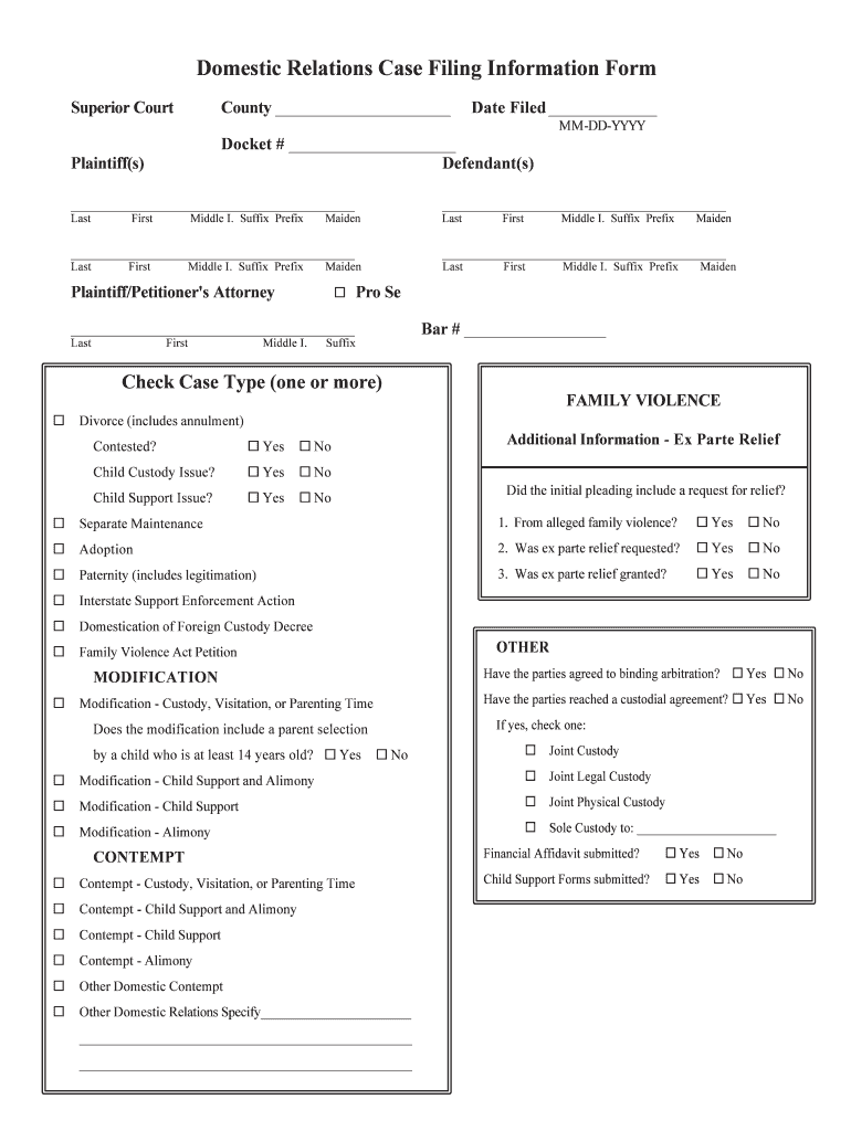 Information such as parent's names, children's names and birthdates, current custody arrangements, and requested visitation schedules may need to be reported on the forms.