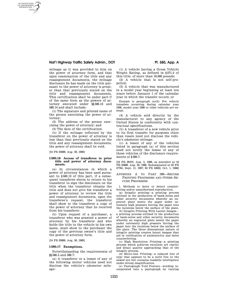 Natl Highway Traffic Safety Admin., DOT mileage as it was provided to him on the power of attorney form, and that upon examination of the title and any reassignment documents, the mileage disclosure