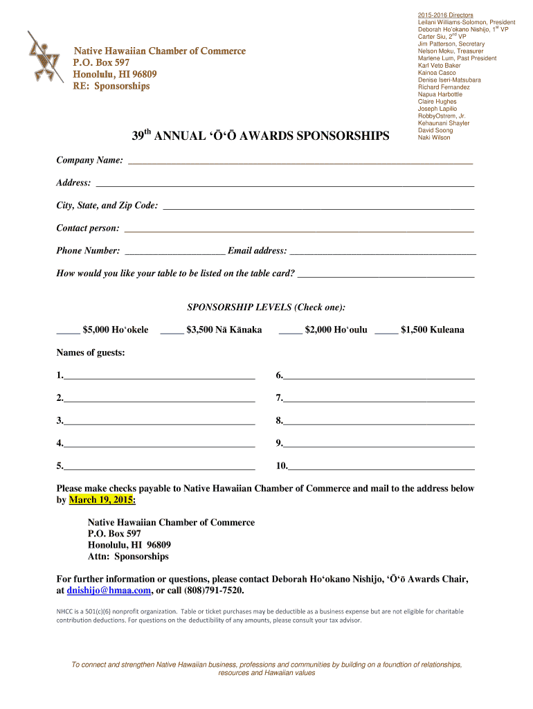 Fill out your native hawaiian chamber of online with pdfFiller!