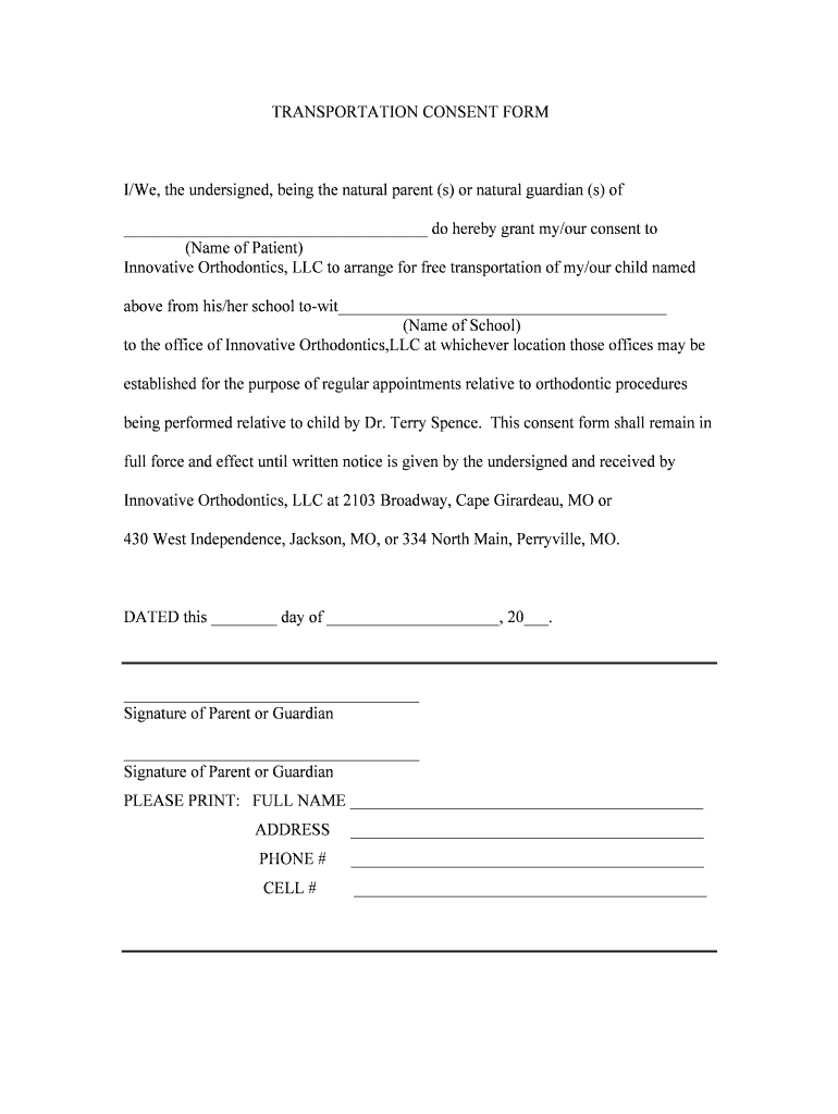 Get the free Transportation Consent Form - Innovative Orthodontics
