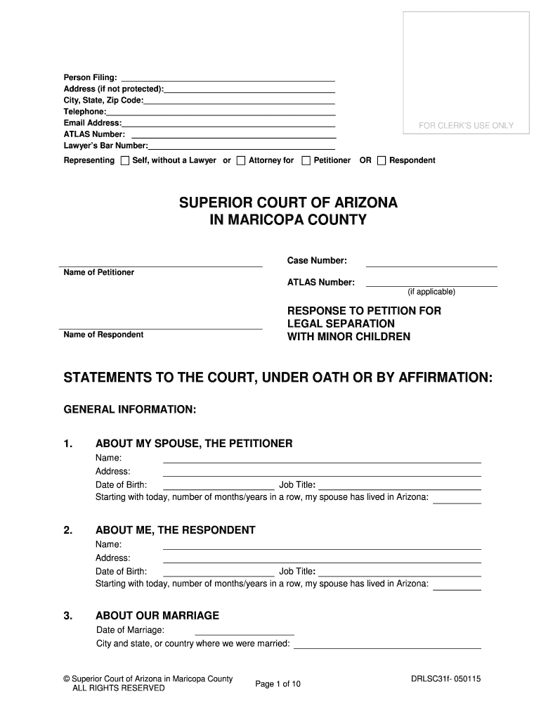 Get the free RESPONSE TO PETITION FOR LEGAL SEPARATION WITH MINOR CHILDREN ; DRLSC31f. RESPONSE T...