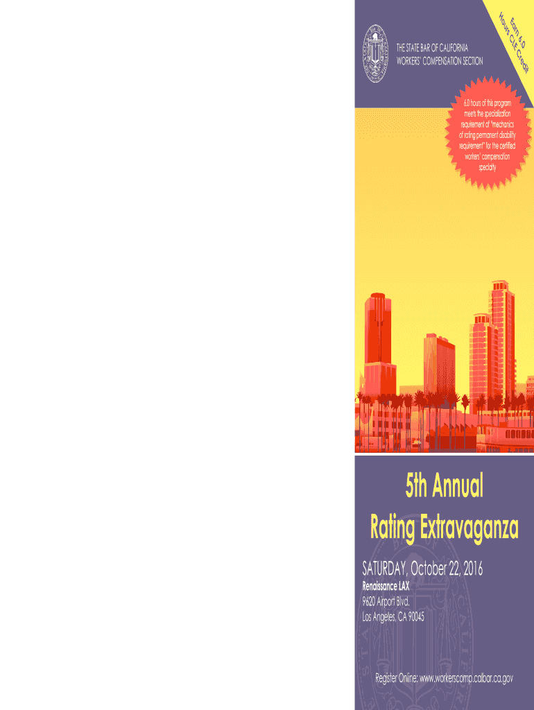 Saturday, October 22, 2016, Los Angeles, CA REGISTRATION FORM Note: One registrant per form. Photocopies may be used. Bar Number: First Class PR SRT Mail U.S. POSTAGE PAID Decimation Workers Compensation