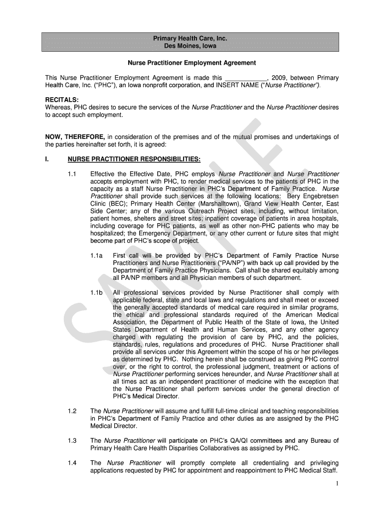 Get the free Nurse Practitioner Employment Agreement - iowapca