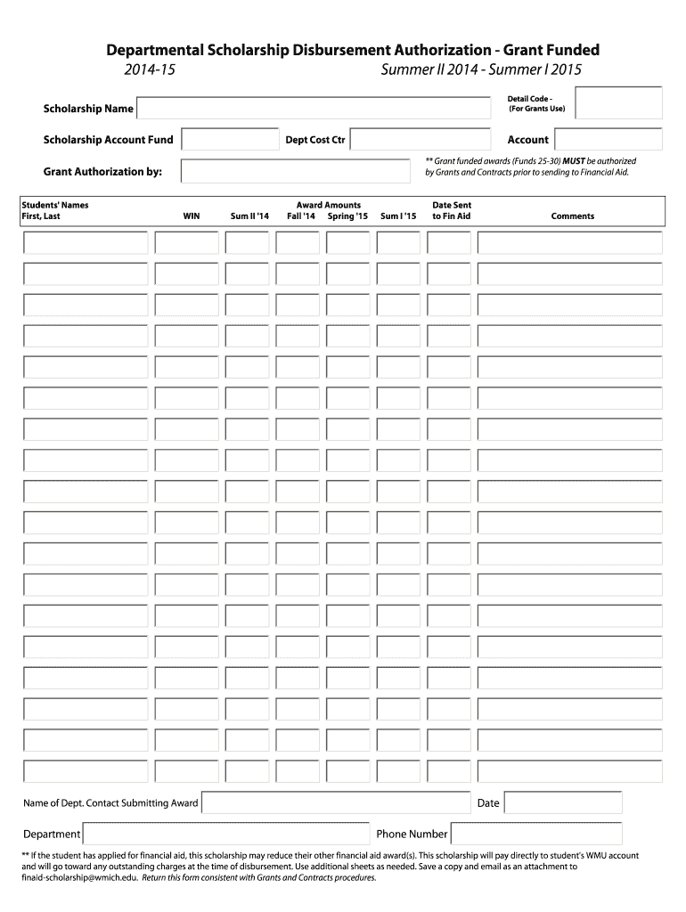 Get the free Departmental Scholarship Disbursement Authorization - Grant ... - wmich