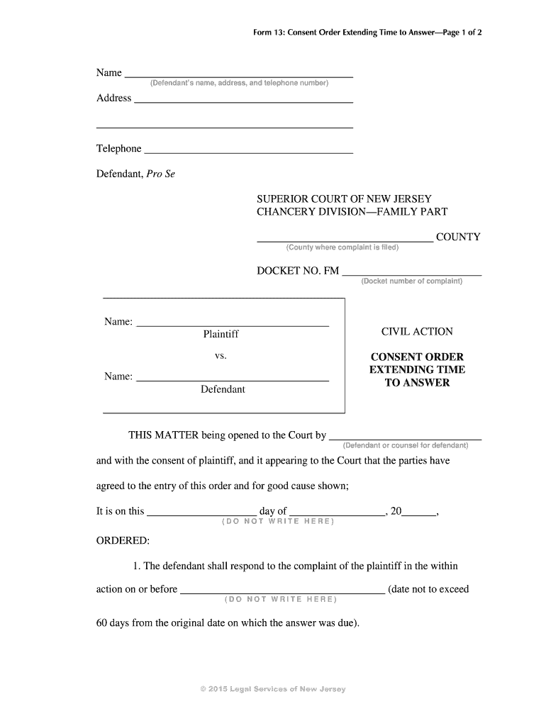 Get the free 13 Consent Order Extending Time to Answer - chplnj