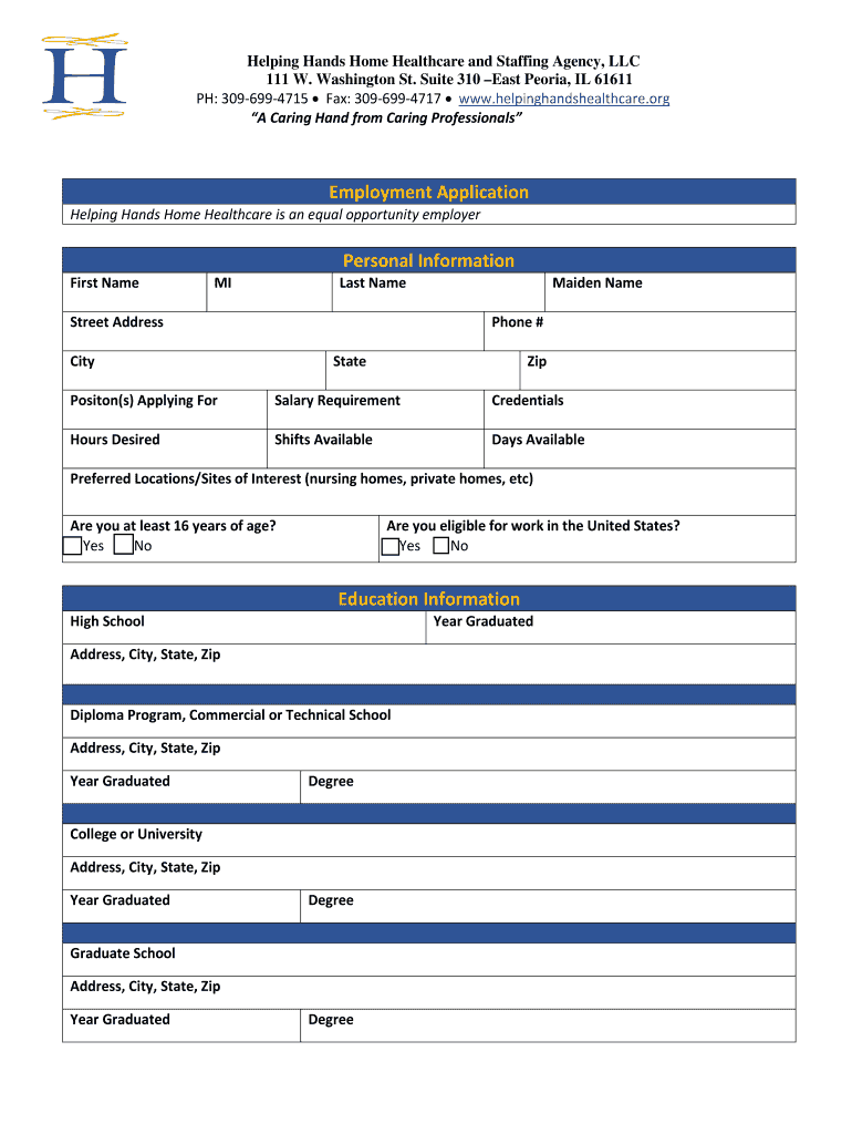 Get the free Helping Hands Home Healthcare and Staffing Agency, LLC