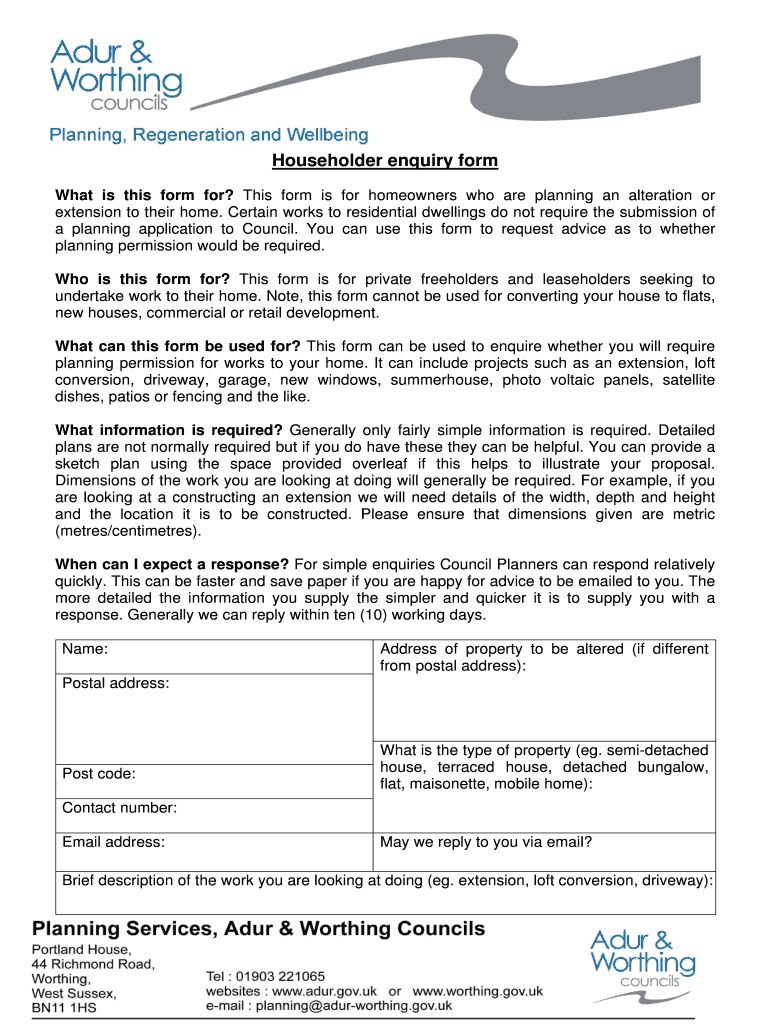 The Householder Enquiry Form is intended for homeowners or leaseholders in the UK who are planning alterations or extensions to their residential properties.