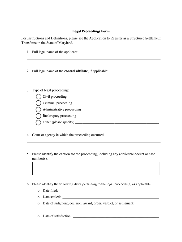 Get the free Legal Proceedings Form