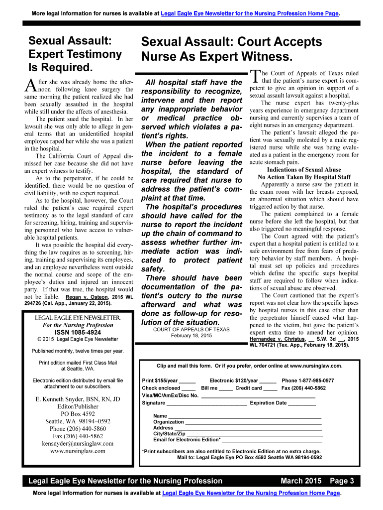 Get the free Sexual Assault: Court Accepts Nurse As Expert Witness.