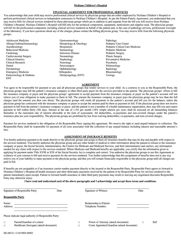Nicklaus Childrens Hospital is not the form you're looking for?Search for another form here.