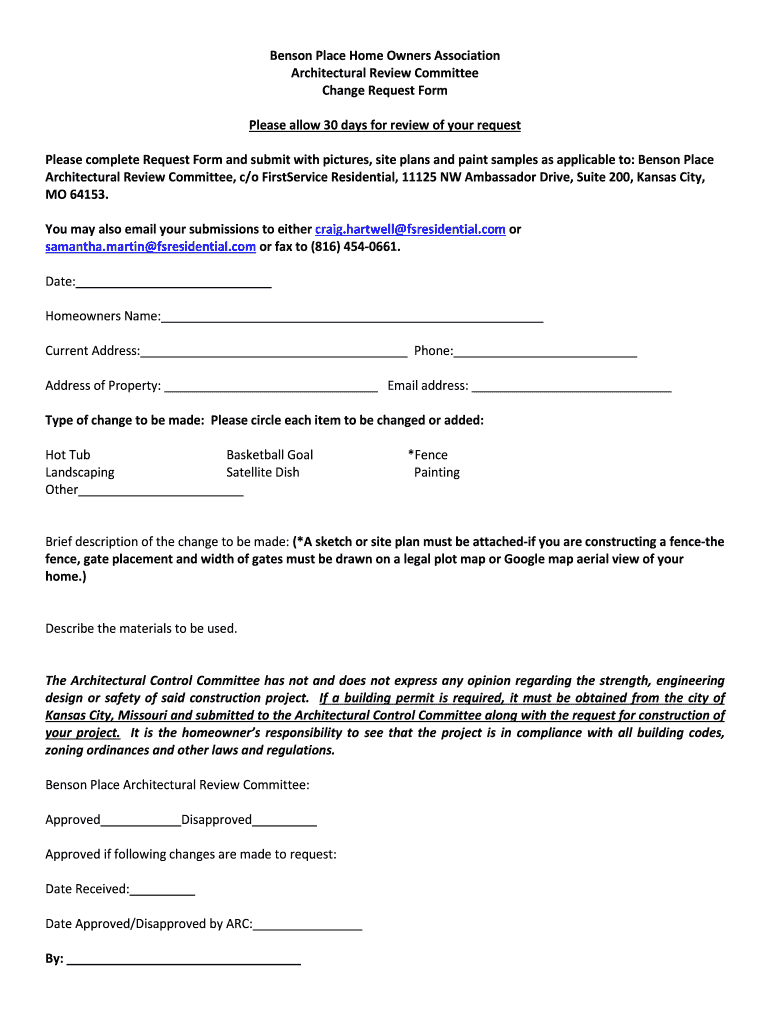 Anyone planning to make architectural changes to a building is required to file an architectural request form.