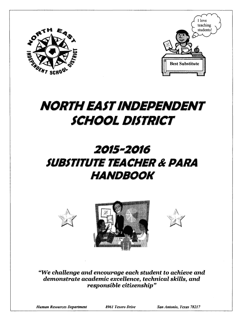 NORTHEAST INDEPENDENTSCHOOL DISTRICT ZOl5ZOld SUBSTITUTE TEA:CHER & PARA HANDBOOK “We challenge and encourage each student to achieve and demonstrate academic excellence, technical skills, and responsible