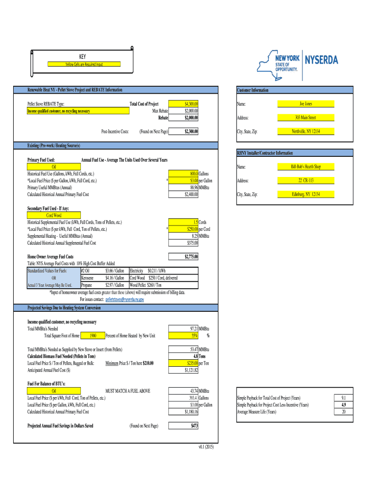 KEY Yellowness required To be Input Renewable Heat NY Pellet Stove Project and REBATE Information Pellet Stove REBATE Type: Customer Information Total Cost of Project Max Rebate Income qualified customer,