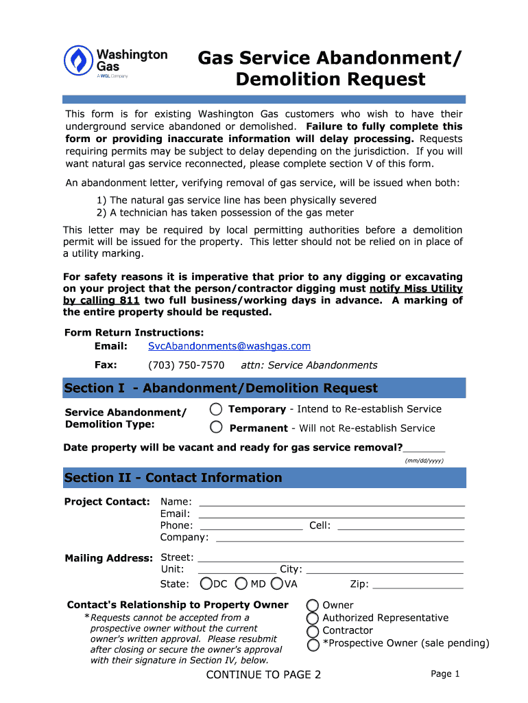 Fill out the forms accurately and completely. Include your personal information, the address of the property where gas service abandonment is needed, and any other requested information.
