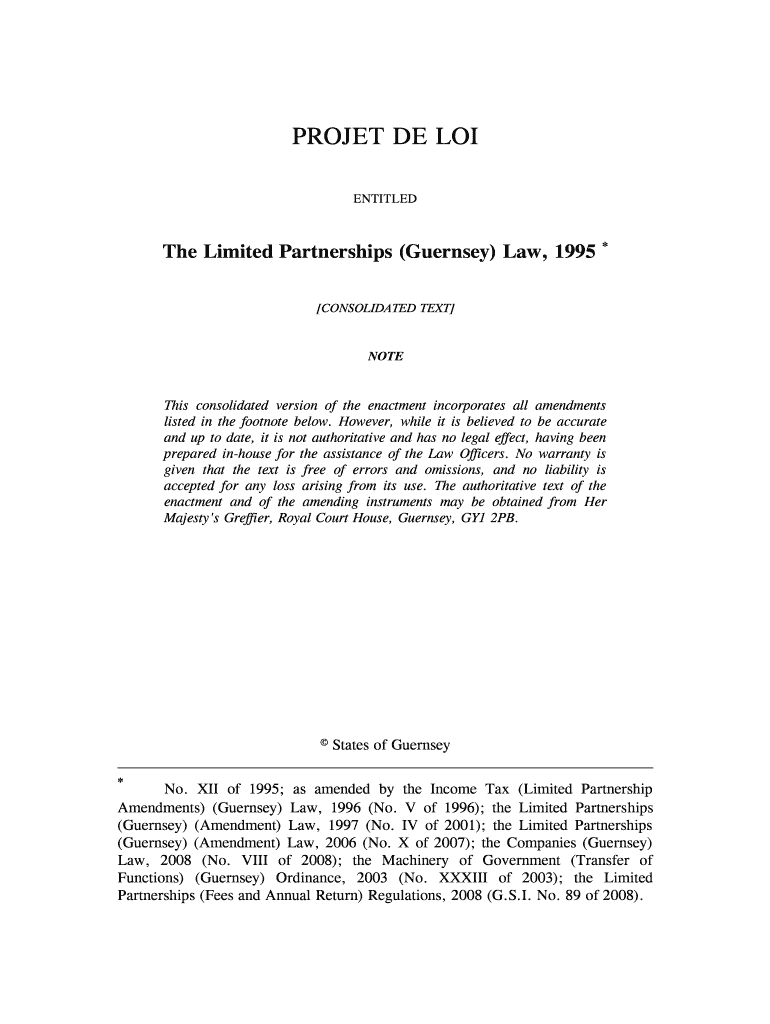 Entitled Limited Partnerships (Guernsey) Law, 1995*[CONSOLIDATED TEXT×Notes consolidated version of the enactment incorporates all amendments